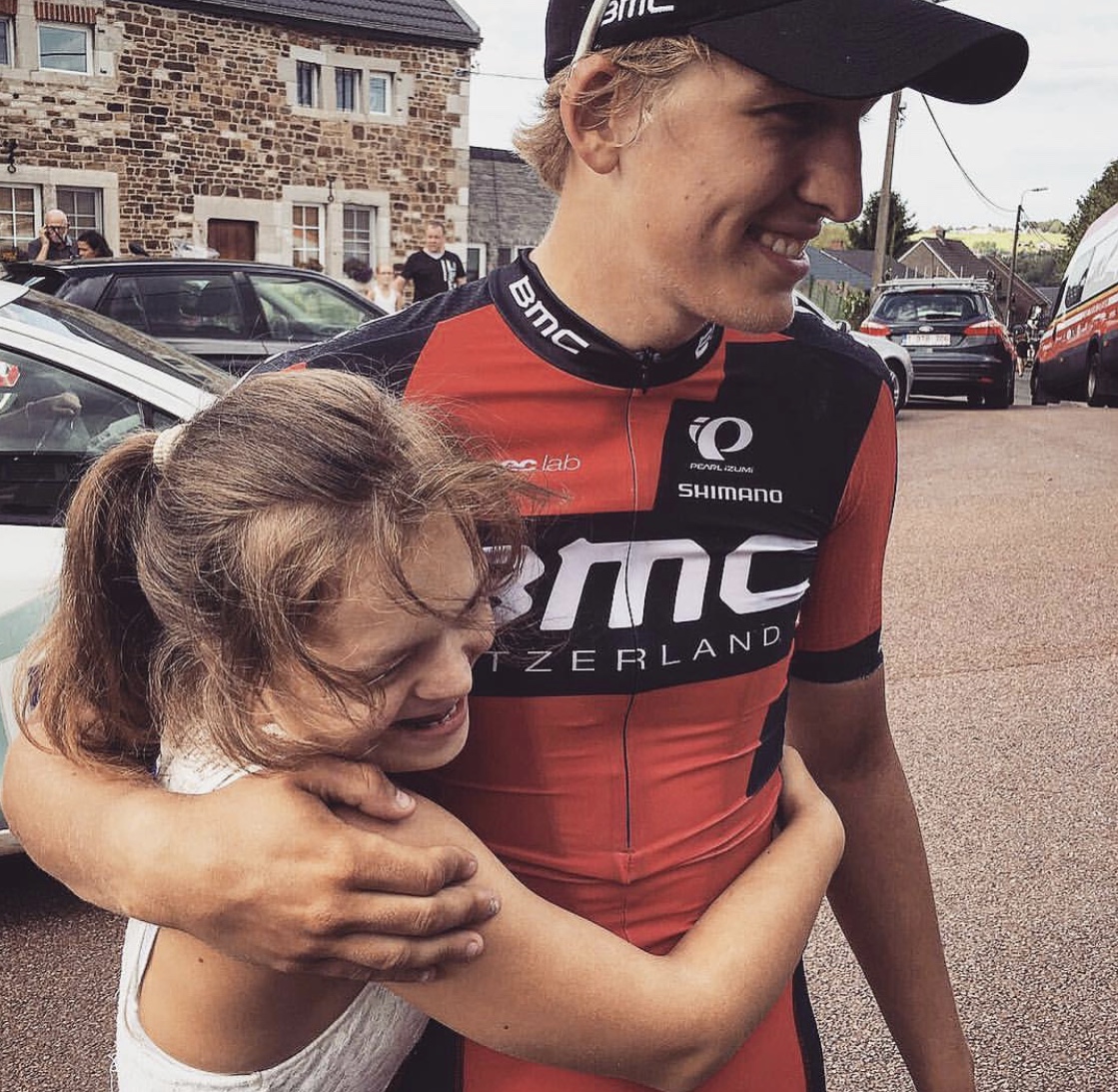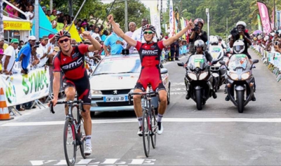 Je leest het goed, Guadeloupe. Duizenden mensen langs de weg, live tv-uitzendingen, een hele karavaan, het was gewoon een soort mini Tour de France van 9 dagen. Bij aankomst was het eerst nog spannend of de ronde door kon gaan, aangezien er een orkaan op het eiland leek af te komen. Gelukkig bleek het mee te vallen en konden we de Tour de Guadeloupe aftrappen met een ploegentijdrit, die we met BMC gelijk wisten te winnen. Een overwinning geeft direct een geweldige teamsfeer, maar al snel kwamen we er achter dat het daar geen koekenbakkers waren. In de volgende etappes werden we door de lokale renners regelmatig op minuten gereden, achteraf bleek ‘gelukkig’ dat er meerdere renners niet op brood en water reden, want ik voelde me soms echt een prutser. Tot de vlakkere etappes kwamen, waar wij met de jongens van BMC in een waaier bij iedereen wegreden. Tot slot bleef ik samen met Ignazio Moser - de zoon van Francesco inderdaad - over. Uiteindelijk kwamen we daar hand in hand over de finish!