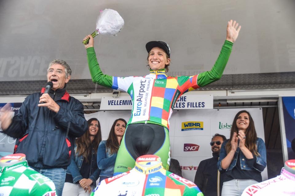 Klimmen is best wel leuk, vooral als je dat op je eigen tempo mag doen. Wanneer dit niet het geval is en je ‘jongetjes’ van onder de 60 kilogram moet gaan volgen in Tour d'Alsace is het al snel een stuk minder leuk. Op de een of andere manier was ik in de ontsnapping geraakt. Soms kom je in kopgroep terecht, waarvan je al weet dat het vrij kansloos gaat zijn om de etappe te kunnen winnen. Dit was precies zo’n dag. Soms ben ik best wel opportunistisch, maar desondanks bezit ik nog wel enige zelfkennis over mijn klimcapaciteiten. Wanneer je de etappe niet kan winnen, moet je maar proberen al het andere dat er nog wel te verdienen is, te pakken. Zo pakte ik tussensprint na tussensprint. Ik kwam zelfs tot het besef dat ik aan het einde van de etappe, bovenop Planche des Belles Filles, gewoon in een leiderstrui ging staan. Uiteindelijk werd ik inderdaad vrij snel gelost en was de ‘Plank van de Mooie Meisjes, zeker geen pretje, maar aan het eind van het verhaal stond ik daar wel met een bos bloemen in mijn handen.
